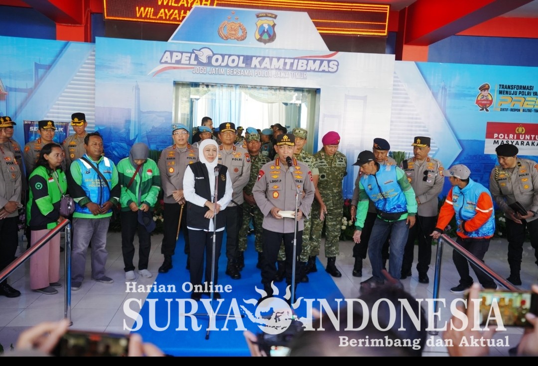 “Alhamdulillah baru saja kita melaksanakan kegiatan apel ojol kamtibmas dengan tema Jogo Jatim bersama ojol dan teman Polda Jatim. Tentunya saya berterima kasih khususnya kepada komunitas ojol yang hari ini telah melaksanakan apel sekaligus juga menyampaikan deklarasi ojol kamtibmas,” kata Sigit.
