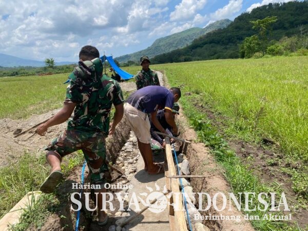 Wujud Kepedulian TNI untuk Petani, Pengecoran Saluran Irigasi TMMD ke-126 di Benteng Tawa Hampir Rampung