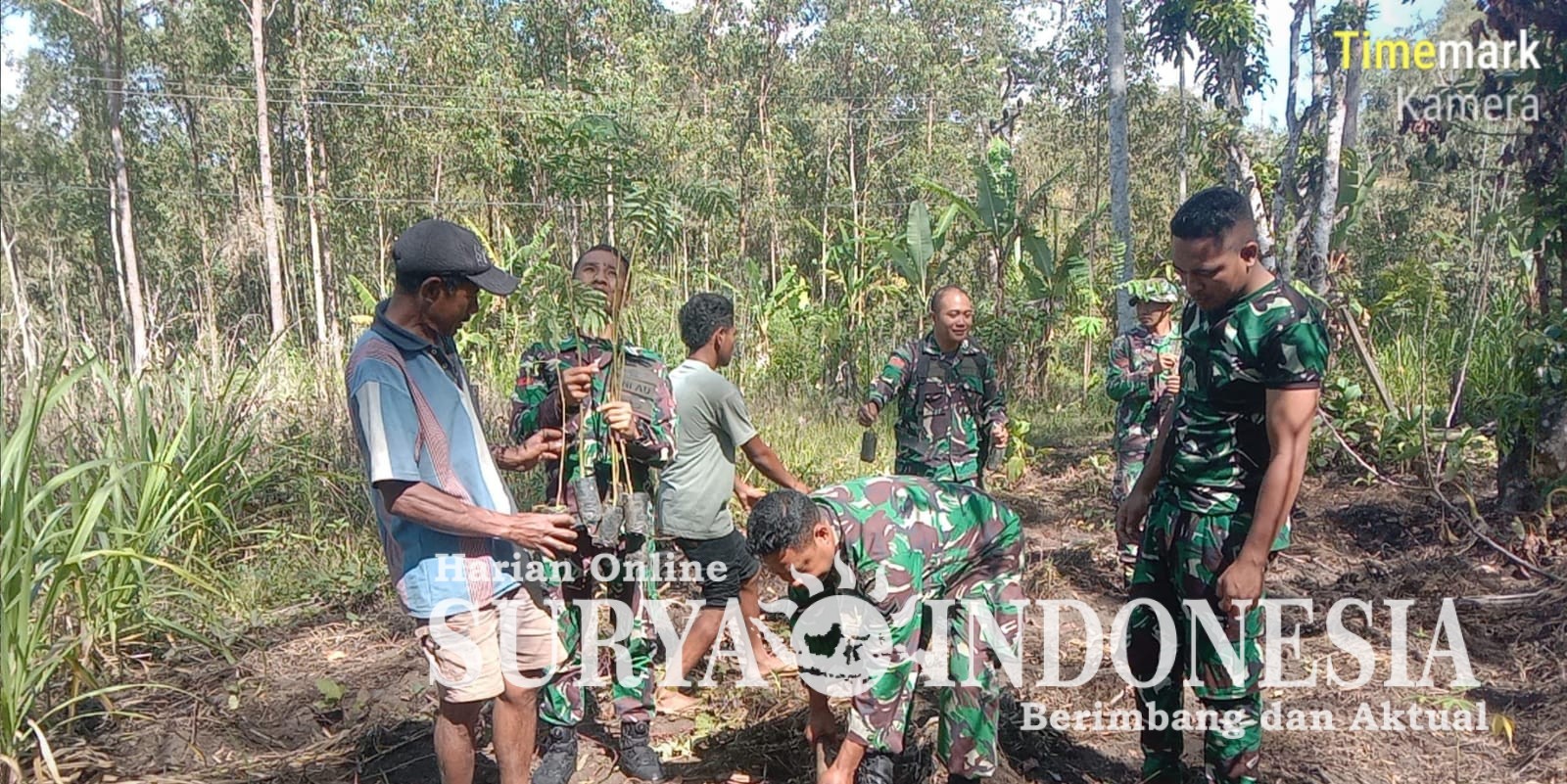 Kegiatan ini melibatkan anggota Satgas TMMD, pemerintah desa, serta masyarakat setempat yang turut berpartisipasi secara antusias. Suasana kebersamaan dan gotong royong tampak jelas saat bahu-membahu menanam bibit pohon di lokasi yang telah disiapkan.