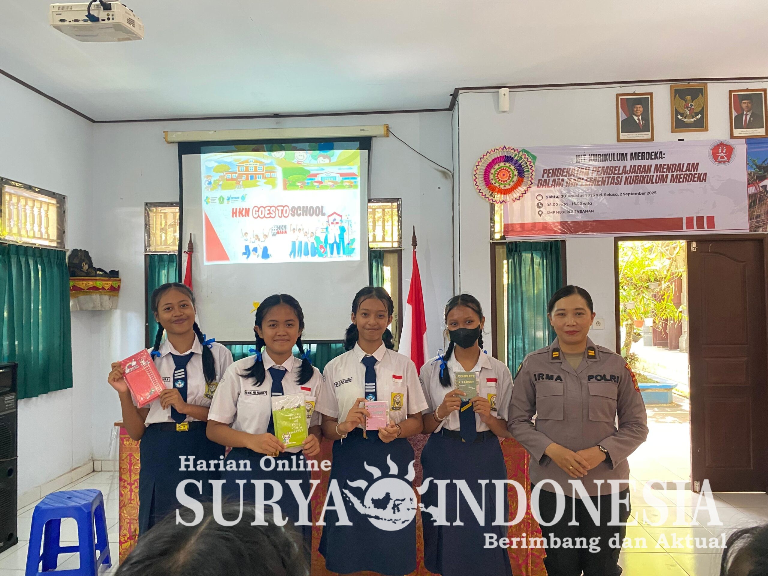 Tabanan, Surya indonesia.net –  Dalam rangka memperingati Hari Kesehatan Nasional (HKN) Tahun 2025, Klinik Bhayangkara Polres Tabanan melaksanakan kegiatan HKN Goes To School dengan menggelar penyuluhan kesehatan bagi pelajar SMP Negeri 2 Tabanan, Senin (10/11/2025) pukul 09.00 Wita. Kegiatan ini dipimpin langsung oleh Kasi Dokkes Polres Tabanan IPTU dr. Ni Wayan Irmawati bersama tiga anggota Klinik Bhayangkara. Program ini bertujuan untuk meningkatkan pengetahuan dan kesadaran remaja terhadap pentingnya menjaga kesehatan diri sejak dini, terutama dalam masa pertumbuhan dan perkembangan.