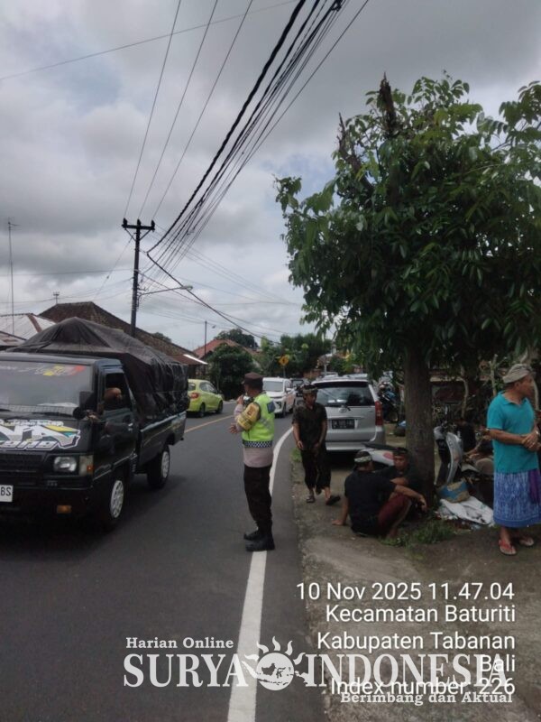 Tabanan , Surya indonesia.net – Polsek Baturiti. Dalam upaya menjaga keamanan dan ketertiban masyarakat (kamtibmas) agar tetap kondusif, Polsek Baturiti melaksanakan kegiatan Patroli Yustisi dan Kegiatan Rutin yang Ditingkatkan (KRYD) pada Senin (10/11/2025). Kegiatan yang dimulai pukul 09.00 hingga 12.00 Wita ini dipimpin oleh Pawas IPDA I Nyoman Sudila bersama tiga personel piket fungsi, menggunakan kendaraan dinas Patroli 902. Sejumlah lokasi strategis seperti SPBU, area perbankan, pertokoan, dan Pasar Baturiti menjadi fokus pengawasan untuk memastikan situasi aman dan terkendali.