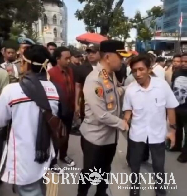 Suryaindonesia.net || Medan – Kapolrestabes Medan Kombes Dr. Jean Calvijn Simanjuntak terlihat berbaur bersama Massa Unjuk Rasa di Depan Kantor Gubernur Sumut, Senin(10/11/2025).