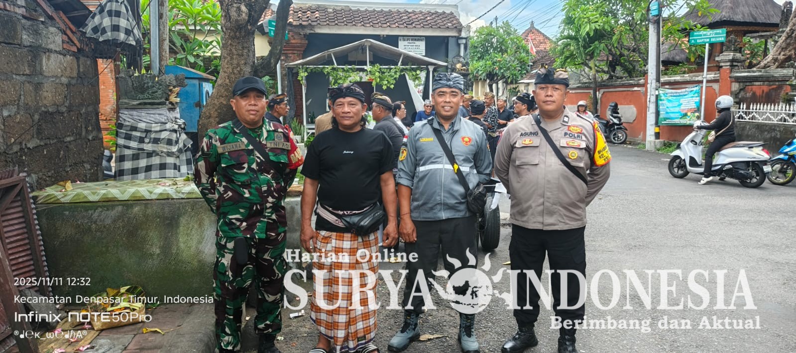 Denpasar , Surya insonesia.net – Dalam rangka menjaga situasi kamtibmas tetap aman dan kondusif di wilayah binaan, Bhabinkamtibmas Kelurahan Dangin Puri Aiptu I Gusti Ngurah Agung M.W, S.H., bersama Babinsa Sertu I Nyoman Wijana, Linmas, serta Pecalang Banjar Tegal Sari melaksanakan pengamanan dan pengaturan arus lalu lintas pada rangkaian upacara Ngaben warga Banjar Tegal Sari, Kelurahan Dangin Puri, Denpasar Timur, Selasa (11/11/2025) siang.