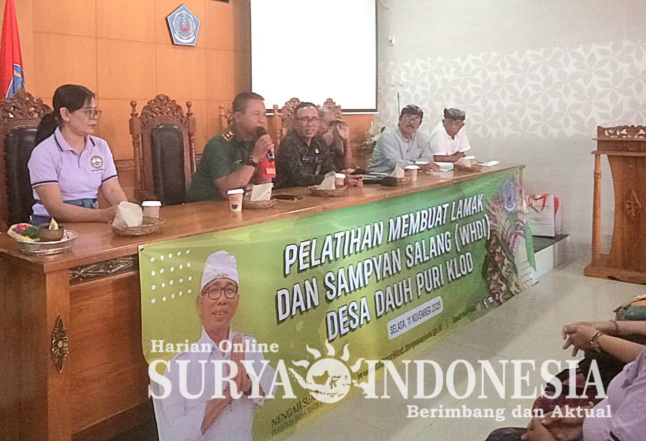 BALI – Denpasar,Surya indonesia.net –  Wanita Hindu Dharma Indonesia (WHDI) Desa Dauh Puri Klod menyelenggarakan pelatihan pembuatan lamak dan sampyan salang di Kantor Desa Dauh Puri Klod, Jalan Serma Repot No. 15. Kegiatan ini bertujuan untuk memberikan pengetahuan dan keterampilan kepada para ibu perwakilan dusun agar dapat meneruskan pelatihan serupa di wilayah masing-masing. Selasa, (11/11/25).