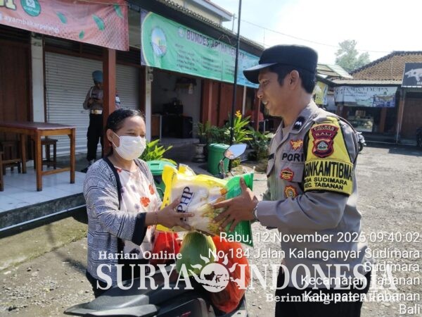 Tabanan, Surya indonesia.net – Polsek Tabanan Rabu 12 November 2025 – Polsek Tabanan kembali menunjukkan komitmennya dalam mendukung ketahanan pangan masyarakat. Untuk kesekian kalinya, Kapolsek Tabanan bersama anggota menyalurkan beras Stabilisasi Pasokan dan Harga Pangan (SPHP), hasil kolaborasi antara Polres Tabanan dengan Bulog Kediri Tabanan, berlokasi di Desa Sudimara, Kabupaten Tabanan, Rabu, 12 November 2025, pukul 10.00 WITA.