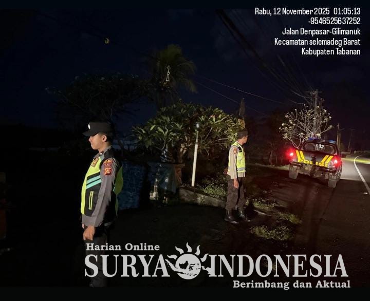 Tabanan, Surya indonesia.net – Polsek Selbar Suraberata, Rabu 12/11/2025 Pukul 21.00 s/d 23.00 wita Dalam rangka menciptakan situasi aman dan kondusif di wilayah Kecamatan Selemadeg barat Personil Polsek Selemadeg barat Polres Tabanan dipimpin Pawas BRIPKA I Wayan Depin optimalkan Kegiatan Patroli “Blue light” guna menekan ruang potensi gangguan Kamtibmas pada malam hari.
