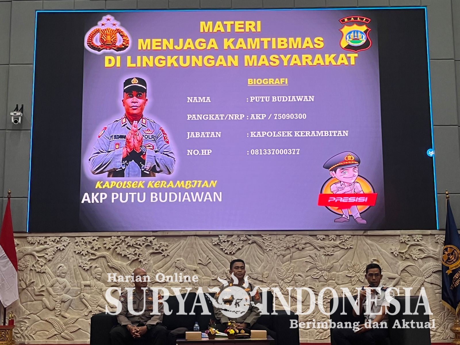 Tabanan, Surya indonesia.net – Polsek Kerambitan, Selasa 12 November 2025 ; Kapolsek Kerambitan AKP PUTU BUDIAWAN menjadi Narasumber dalam Kuliah Umum Masa Bimbingan Mental (Mabintal) Tahun 2025 Mahasiswa Poltrada Bali bertempat di Poltrada Bali.