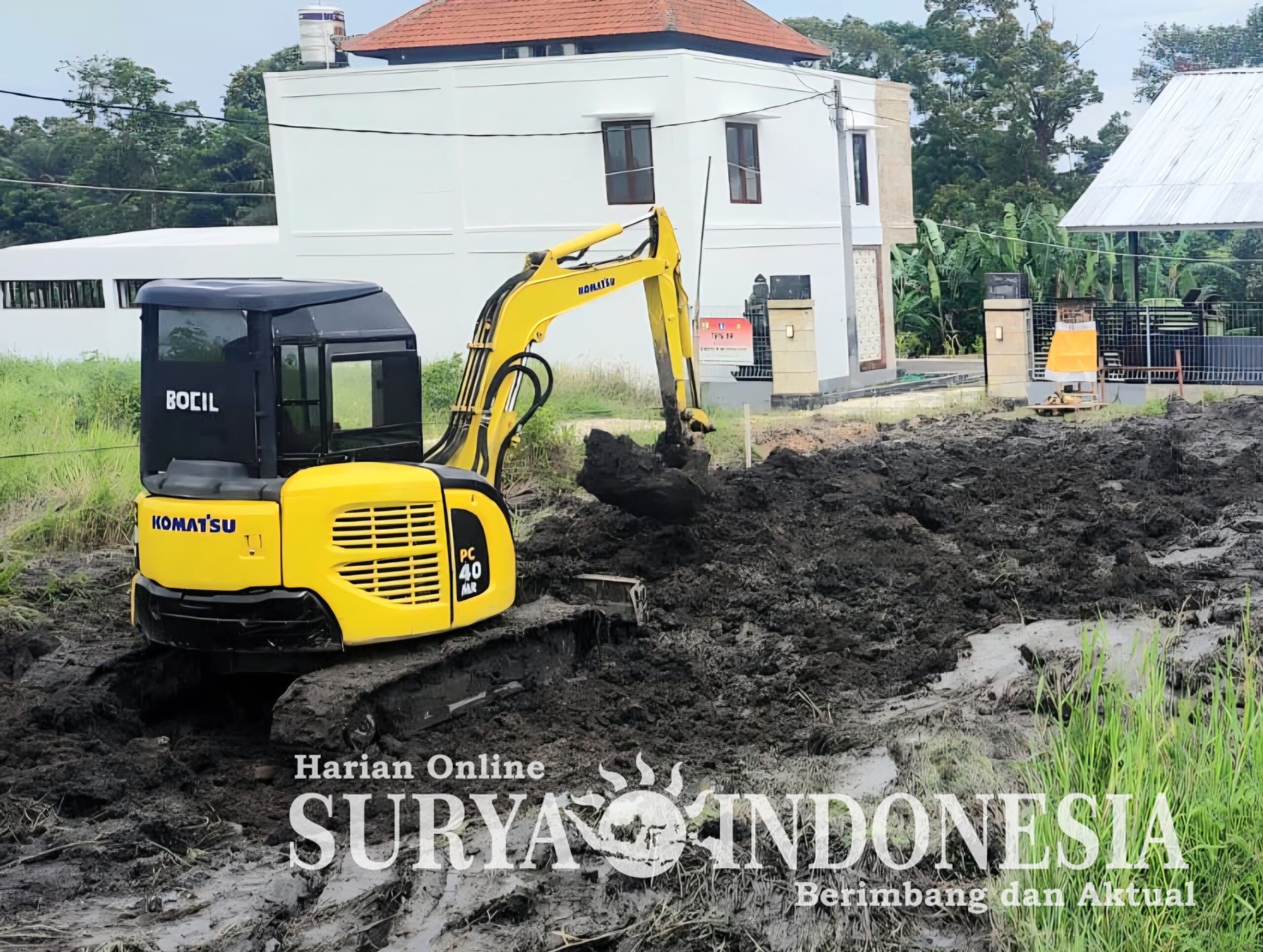 Pengerjaan awal difokuskan pada perataan tanah seluas 30 x 20 meter menggunakan excavator. Selain itu, dilakukan penggalian saluran air sepanjang kurang lebih 40 meter untuk memastikan sistem drainase yang baik di sekitar lokasi koperasi. Pemasangan patok siku di setiap sudut lahan juga telah dilakukan sebagai langkah awal penataan struktur bangunan.
