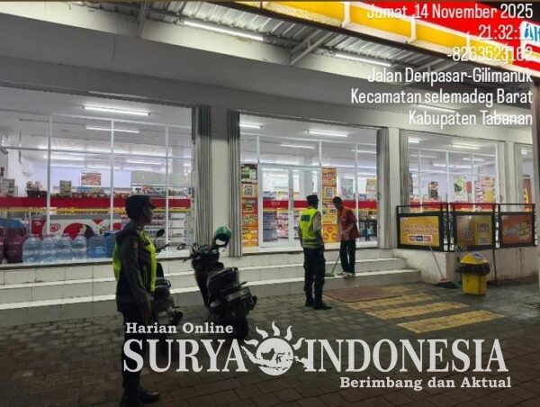 Tabanan, Surya indonesia.net – Polsek Selbar Suraberata, Sabtu 16/11/2025 Pukul 21.00 s/d 23.00 wita Dalam rangka menciptakan situasi aman dan kondusif di wilayah Kecamatan Selemadeg barat Personil Polsek Selemadeg barat Polres Tabanan dipimpin Pawas BRIPKA I Wayan Depin optimalkan Kegiatan Patroli “Blue light” guna menekan ruang potensi gangguan Kamtibmas pada malam hari.