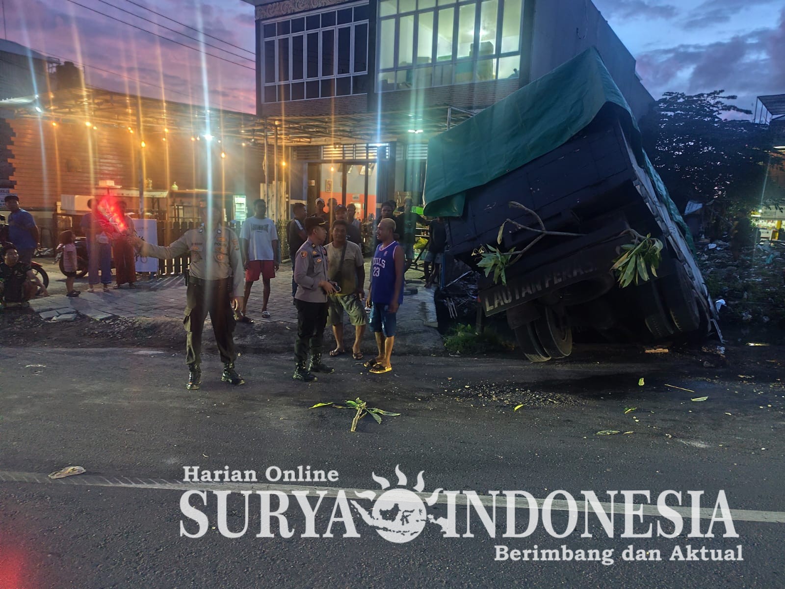 Denpasar, Surya indonesia.net – Sebuah truk mengalami kecelakaan tunggal atau out of control hingga masuk ke dalam parit di Jalan Pulau Moyo, tepatnya di sebelah Gang Subak Sari, Pedungan, Denpasar Selatan, pada Jumat (14/11/2025) sekitar pukul 18.30 Wita. Peristiwa terjadi akibat kondisi jalan licin dan adanya genangan pasir yang membuat kendaraan hilang kendali.