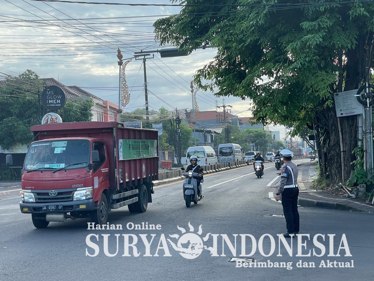 Personil Polsek Mengwi Lakukan Pengaturan di Simpang Wiros Ciptakan Kamseltibcarlantas di Pagi Hari