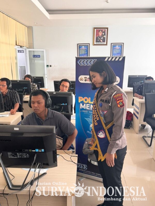Denpasar , Surya Indonesia.net – Pelayanan humanis kembali ditunjukkan oleh personel Satpas SIM Polresta Denpasar dalam pelaksanaan ujian teori bagi para pemohon Surat Izin Mengemudi (SIM). Pada kegiatan yang berlangsung di ruang ujian teori Satpas Polresta Denpasar tersebut, petugas terlihat aktif mendampingi peserta untuk memastikan proses berjalan lancar, tertib, dan transparan. (21/11/25)