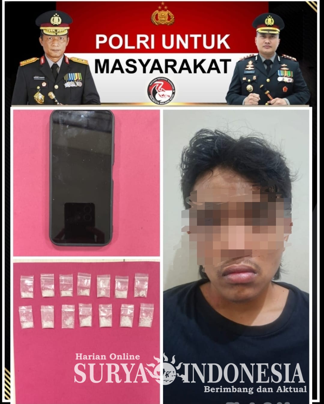 MALANG , Surya Indonesia.net – Satreskoba Polresta Malang Kota menangkap seorang terduga kurir narkoba di Jalan Cengger Ayam, Lowokwaru, pada Sabtu (22/11) sekitar pukul 19.30 WIB