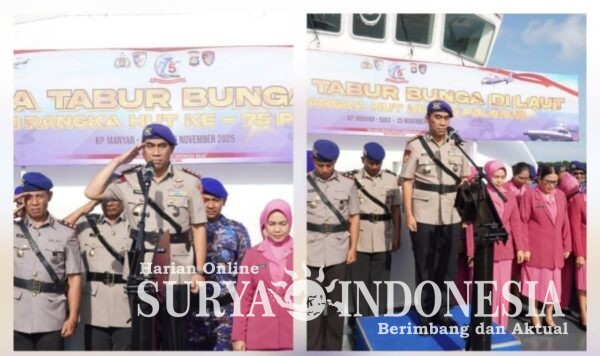 Tabanan, Surya Indonesia.net – Dalam rangka memperingati Hari Ulang Tahun Polairud ke-75 tahun 2025, Kasat Polairud Polres Tabanan AKP I Putu Sartika,S.H.,M.H, turut hadir dalam pelaksanaan upacara tabur bunga yang digelar pada Selasa, 25 November 2025, sekitar pukul 08.00 Wita. Kegiatan berlangsung khidmat di atas Kapal Polisi Manyar-5003 BKO Baharkam Polri yang menjadi lokasi pusat pelaksanaan upacara. Kehadiran para Kasat Polairud jajaran menambah kekhidmatan kegiatan yang merupakan tradisi penghormatan kepada para pahlawan dan anggota kepolisian yang telah gugur dalam tugas.