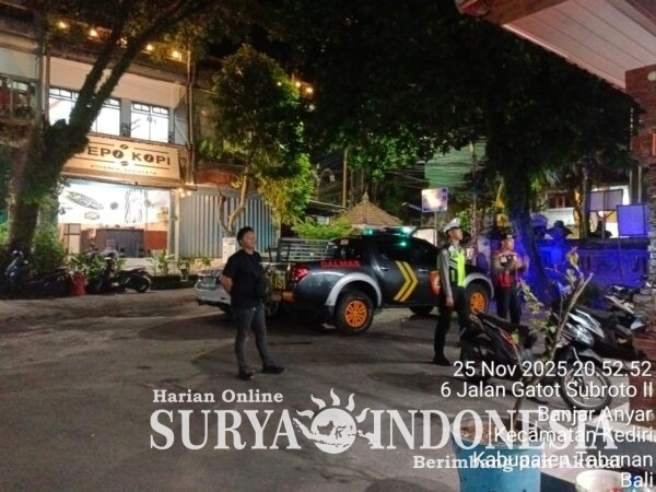 Tabanan, Surya Indonesia.net – Polres Tabanan kembali menggelar Blue Light Patrol sebagai upaya preventif dalam menjaga situasi keamanan dan ketertiban masyarakat pada malam hari. Kegiatan yang berlangsung pada Rabu (25/11/2025) pukul 20.30 hingga 22.00 Wita ini dipimpin langsung oleh Pawas Polres Tabanan IPTU I Ketut Padnya dengan melibatkan 19 personel gabungan piket fungsi. Sebelum pelaksanaan, kegiatan diawali dengan apel kesiapan serta penyampaian arahan kepada seluruh personel untuk memastikan patroli berjalan optimal.