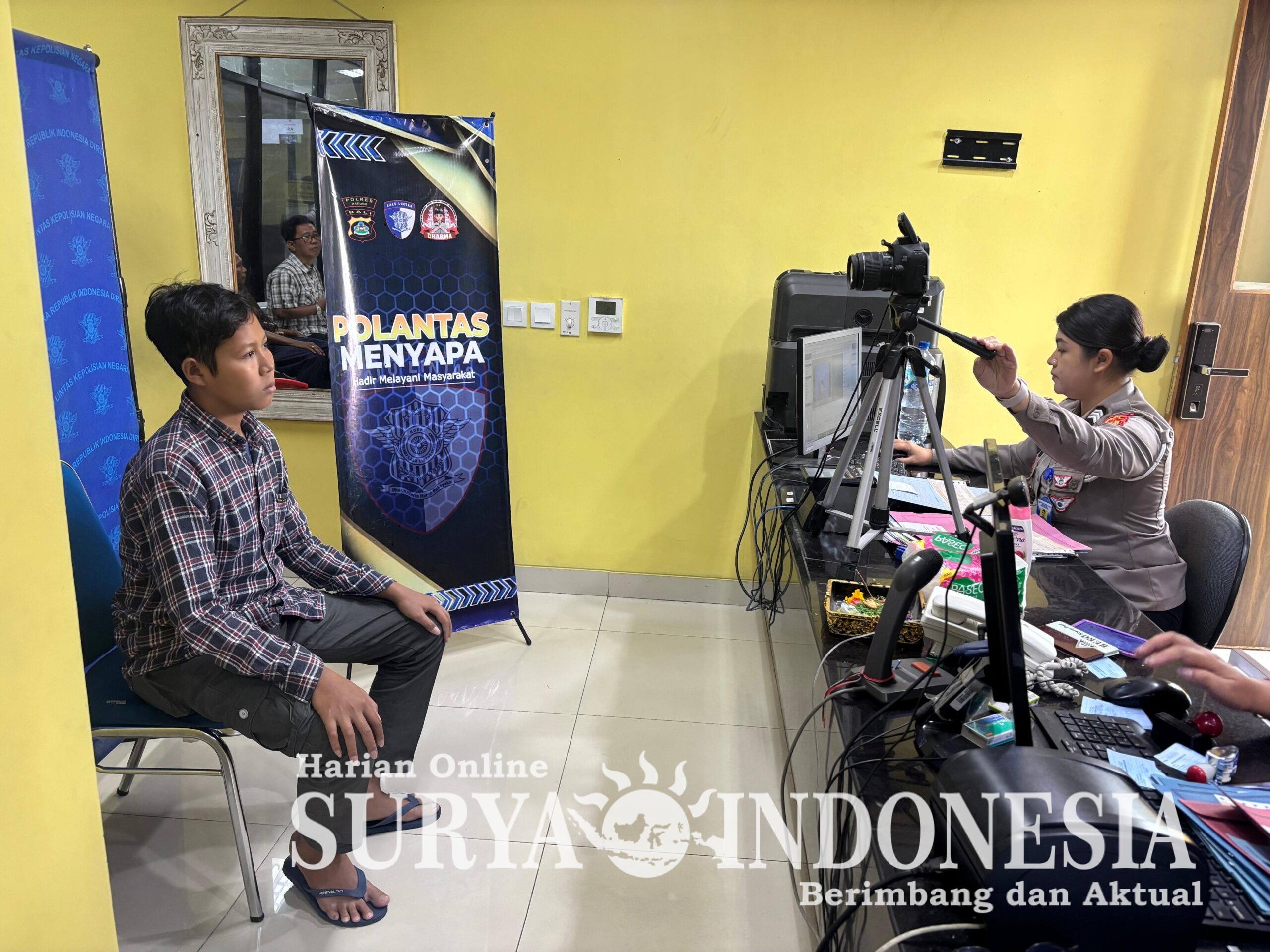 Mangupura, suryaindonesia.net – Satlantas Polres Badung kembali menjalankan program Polantas Menyapa di ruang pelayanan SIM sebagai upaya meningkatkan kualitas pelayanan publik. Dalam kegiatan ini, petugas turun langsung mendampingi warga yang tengah mengurus administrasi SIM, termasuk memberikan arahan mengenai proses dan persyaratan yang harus dipenuhi. Kehadiran polisi di loket pelayanan membuat suasana lebih komunikatif dan memudahkan pemohon dalam memahami setiap tahapan. Rabu (26/11/25)