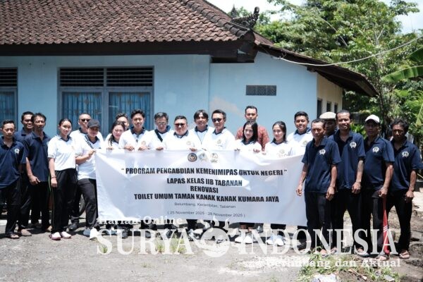 Tabanan, Surya Indonesia. Net – Dalam rangka memperingati Hari Bakti Kementerian Imigrasi dan Pemasyarakatan (Imipas) ke-1 Tahun 2025, Lembaga Pemasyarakatan (Lapas) Kelas IIB Tabanan melaksanakan kegiatan bakti sosial berupa perbaikan toilet di Taman Kanak-Kanak Kumara Jaya, Desa Belumbang, Kerambitan, Rabu (26/11). Aksi sosial bertajuk Imipas Peduli ini menjadi wujud nyata kepedulian Pemasyarakatan terhadap kebutuhan masyarakat, khususnya fasilitas dasar yang menunjang kegiatan belajar anak-anak.