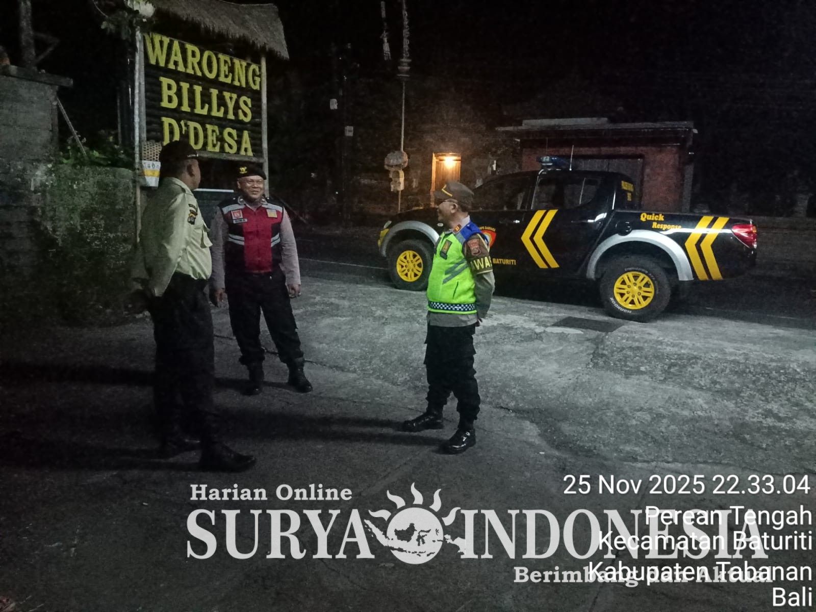 Tabanan, Surya Indonesia.net – Polsek Baturiti melaksanakan kegiatan Patroli Jam-Jam Rawan pada malam hari sebagai langkah preventif untuk mencegah terjadinya tindak pidana pencurian dengan pemberatan (Curat), pencurian dengan kekerasan (Curas), dan pencurian kendaraan bermotor (Curanmor) di wilayah hukum Polsek Baturiti. Kegiatan patroli ini dilaksanakan pada hari Selasa, 25 November 2025, mulai pukul 21.00 Wita hingga pukul 00.00 Wita guna memberikan rasa aman dan nyaman kepada masyarakat.