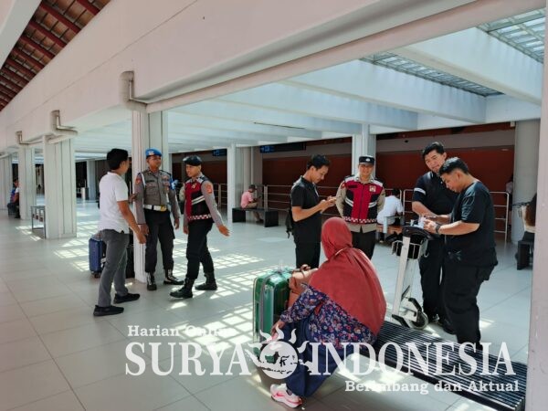 Petugas melakukan pemantauan arus penumpang, memberikan imbauan mengenai keamanan barang bawaan, serta melaksanakan komunikasi dialogis dengan warga untuk memastikan tidak ada kendala yang dihadapi selama berada di area bandara. Koordinasi dengan petugas keamanan bandara juga terus ditingkatkan guna meminimalisir potensi gangguan Kamtibmas.
