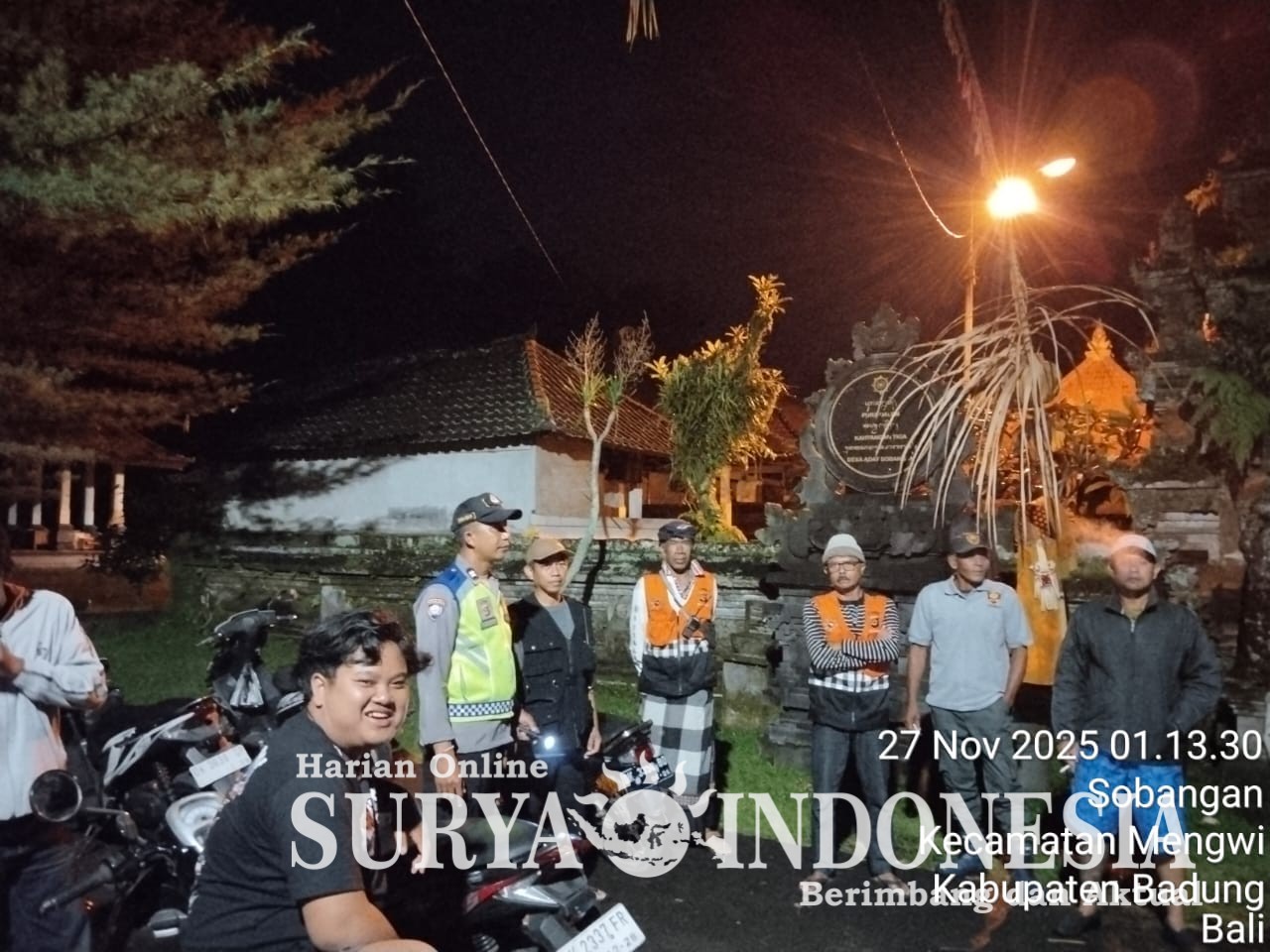 Mengwi, suryaindonesia.net – Dalam rangka menciptakan situasi kamtibmas yang aman dan kondusif, Bhabinkamtibmas Desa Sobangan Aiptu I Made Suastika bersama perangkat desa melaksanakan patroli malam di sejumlah wilayah Desa Sobangan, Kecamatan Mengwi, Kabupaten Badung. Kamis (27/11/2025) dini hari