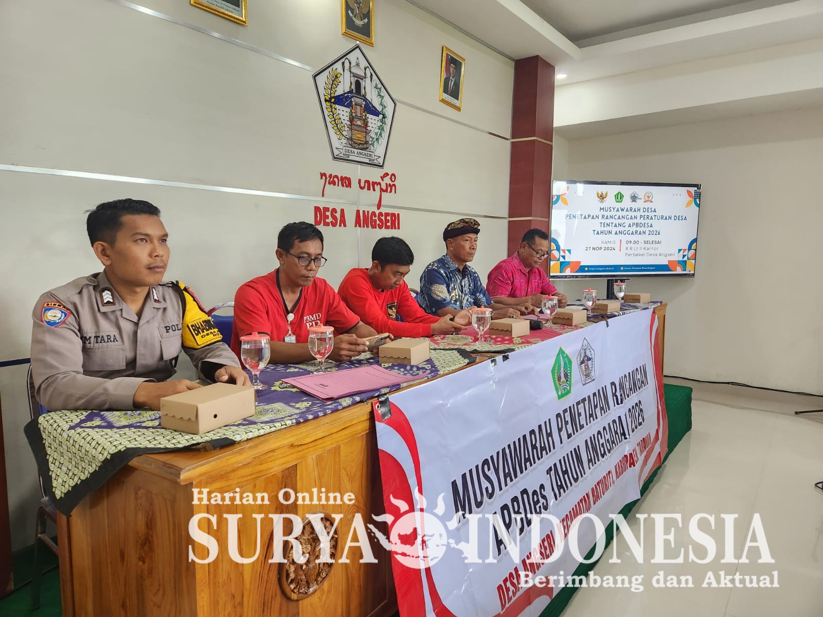 Bhabinkamtibmas Desa Angseri BRIGPOL I Nym Mantara Wijanata menghadiri kegiatan MUSDES yang membahas penetapan rancangan Peraturan APBDesa Tahun Anggaran 2026, serta penentuan usulan dan skala prioritas pembangunan di bidang pendidikan dan kesehatan. Kegiatan dihadiri oleh unsur pemerintahan desa, BPD, LPM, perangkat desa, tokoh adat, pendamping desa, serta unsur terkait lainnya.