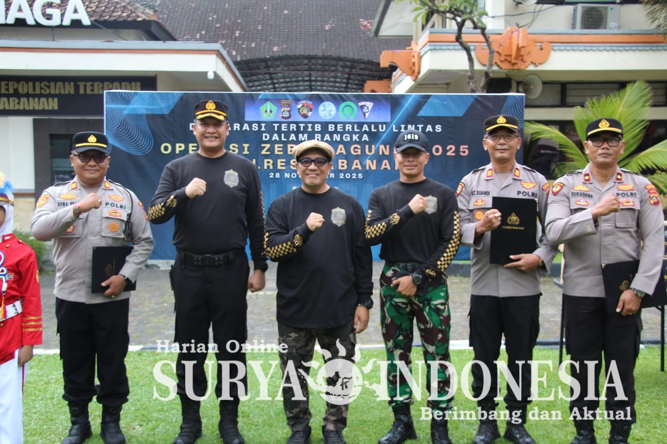 Tabanan, Surya Indonesia.net – Polres Tabanan menggelar Apel Deklarasi Tertib Berlalu Lintas dalam rangka Operasi Zebra Agung 2025 yang dirangkaikan dengan Peresmian Bhayangkara Singasana Riders Brotherhood serta Touring Bersama memperingati HUT Kota Singasana ke-532. Kegiatan berlangsung pada Jumat, 28 November 2025, pukul 09.00–12.00 WITA di Lapangan Tathya Dharaka Polres Tabanan dan berlanjut di wilayah Kabupaten Tabanan. Kegiatan ini dipimpin langsung oleh Bupati Tabanan, Dr. I Komang Gede Sanjaya, S.E., M.M., didampingi Kapolres Tabanan AKBP I Putu Bayu Pati, S.I.K., M.H.
