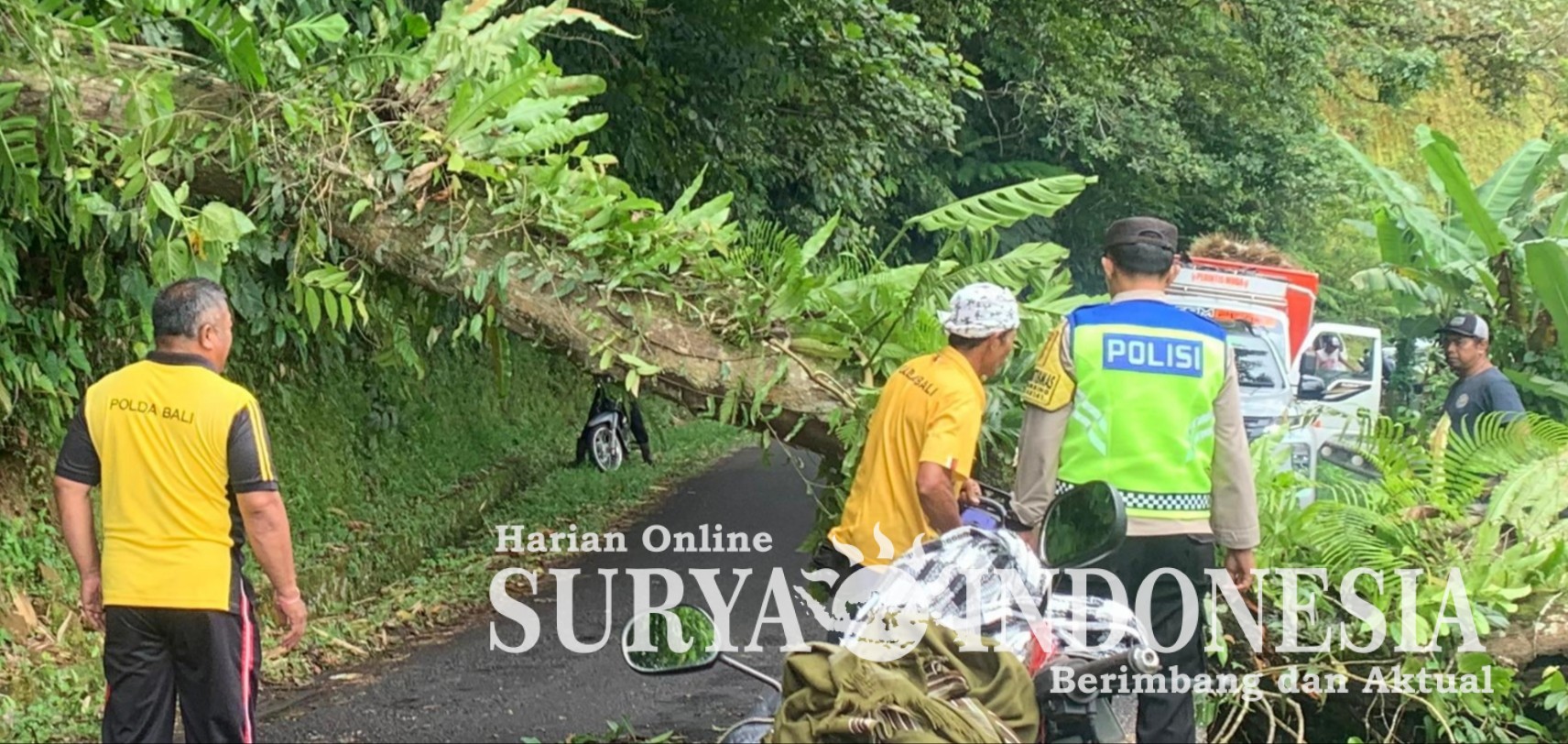 Peristiwa tersebut terjadi di wilayah Banjar Dinas Sanda, Desa Sanda, Kecamatan Pupuan, Kabupaten Tabanan, akibat curah hujan yang terjadi sejak pagi hari sehingga menyebabkan pohon berukuran besar roboh melintang ke badan jalan. Personel Polsek Pupuan bersama BPBD Tabanan, Dinas PU, Babinsa serta masyarakat sekitar melaksanakan evakuasi, pemotongan batang pohon, dan pembersihan material menggunakan gergaji mesin. Kehadiran personel Polsek Pupuan bertujuan untuk memastikan situasi tetap kondusif, mengurai kemacetan, serta mempercepat pembukaan akses jalan utama agar dapat dilalui kembali dengan aman.