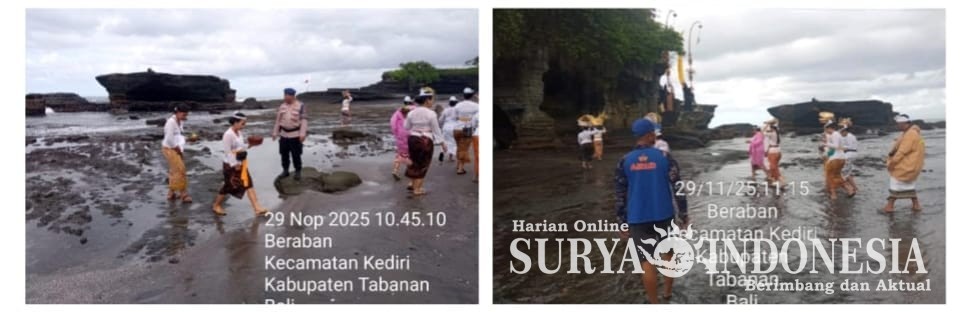 Tabanan, SuryaIndonesia.net – Sat Polairud Polres Tabanan melaksanakan kegiatan patroli pesisir pada Sabtu, 29 November 2025, di kawasan Obyek Wisata DTW Pantai Tanah Lot. Patroli yang dimulai pukul 13.00 WITA ini dipimpin oleh Aipda I Nyoman Subagiarta bersama Bripka Agus Setyawan. Kegiatan dilakukan guna memastikan keamanan wisatawan lokal maupun mancanegara yang tengah melakukan aktivitas liburan serta umat Hindu yang melaksanakan persembahyangan menjelang Hari Raya Kuningan di Pura Luhur Tanah Lot.
