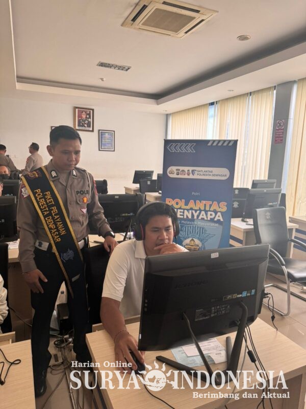 Denpasar, Surya Indonesia.net — Satpas SIM Polresta Denpasar terus menunjukkan komitmennya dalam memberikan pelayanan publik yang cepat, transparan, dan humanis. Hal ini terlihat dalam kegiatan pendampingan kepada para pemohon Surat Izin Mengemudi (SIM) yang sedang melaksanakan ujian teori, Senin (1/12/25)