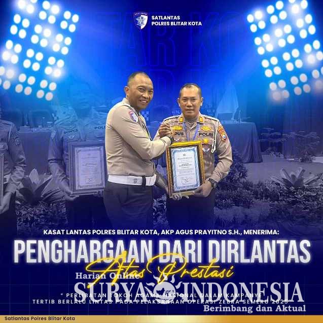 Blitar/suryaindonesia.net – Direktorat Lalu Lintas Polda Jawa Timur memberikan penghargaan kepada Satlantas Polres Blitar Kota atas kolaborasi inovatifnya dengan tokoh agama nasional. Kombes Pol Iwan Saktiadi secara langsung menyerahkan penghargaan tersebut sebagai bentuk pengakuan.