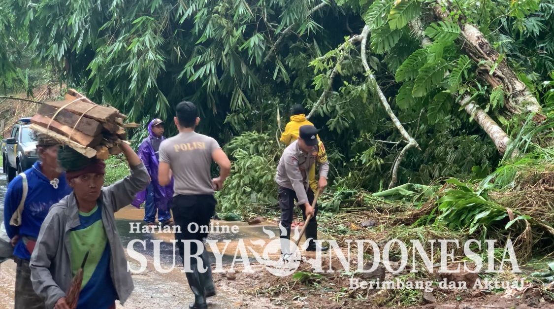 Tabanan, Surya Indonesia.net – Polsek Pupuan, Rabu 4 Desember 2025 pukul 08.00 s/d 10.00 Wita, Polsek Pupuan bersama masyarakat melaksanakan kegiatan pembersihan material tanah longsor yang terjadi pada Selasa 3 Desember 2025. Kegiatan dilaksanakan oleh anggota piket fungsi bersinergi dengan masyarakat dan dinas PU bergotong royong menyingkirkan material longsor yang menutup sebagian badan jalan.