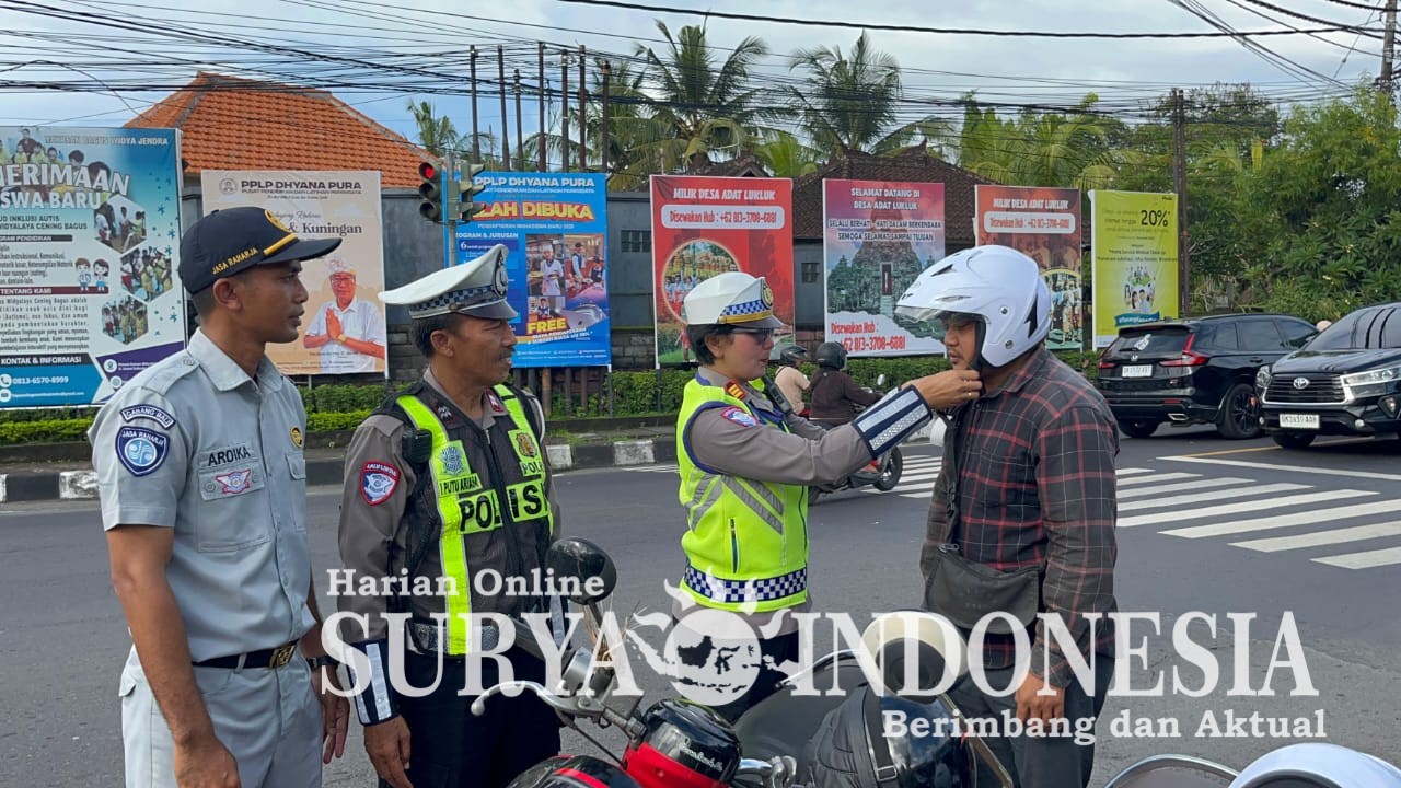 Mangupura, Surya Indonesia.net – Sat Lantas Polres Badung bersama Jasa Raharja Cabang Bali melaksanakan Aksi Simpatik di Simpang TL Lukluk, Jalan Raya Denpasar–Singaraja, Jumat (5/12). Kegiatan ini difokuskan pada edukasi kepada pengendara mengenai titik rawan kecelakaan (blackspot) serta pembagian helm SNI bagi pengguna jalan yang helmnya sudah tidak layak pakai.