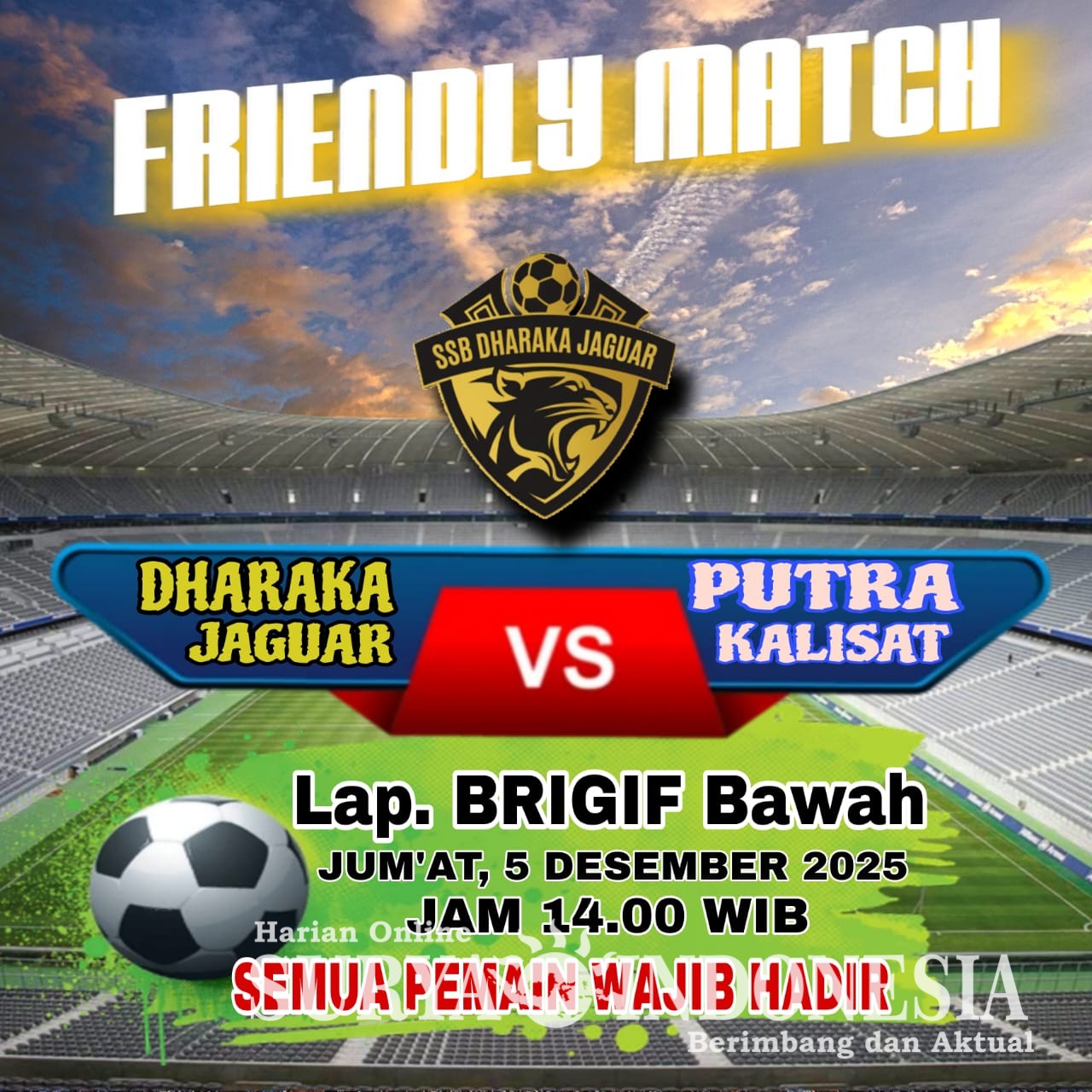 Jember, suryaindonedia.net,- Sekolah Sepakbola (SSB) Dharaka Jaguar Brigif 9 Jember Kecamatan Patrang Kabupaten Jember Jawa Timur Sepakbola Usia Dini KU 8 ,10, 12 dan 15 dalam persahabatan yang digelar di Lapangan Brigif 9 Jember, Jumat 05 Des 2025.