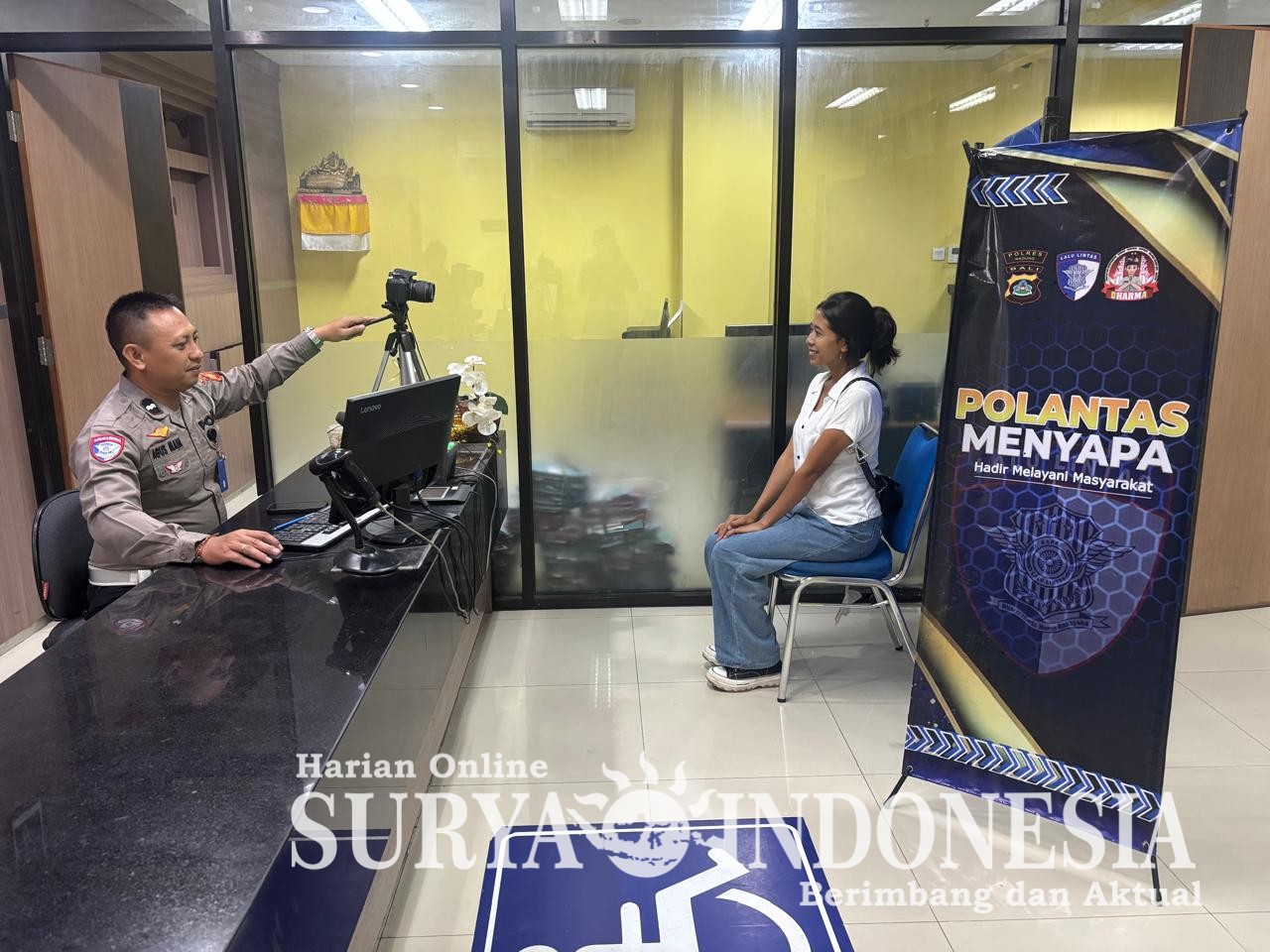 Mangupura, Surya Indonesia.net – Program Polantas Menyapa kembali hadir sebagai bagian dari upaya meningkatkan kualitas pelayanan publik di bidang lalu lintas. Dalam kegiatan yang berlangsung di ruang pelayanan SIM tersebut, petugas melayani masyarakat dengan pendekatan yang lebih humanis, termasuk saat proses perekaman dan pengambilan foto. Jumat (5/12/25). Suasana ramah dan informatif tampak menjadi ciri utama pelayanan, sehingga warga merasa lebih nyaman saat mengurus administrasi.