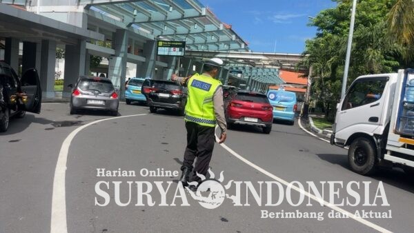 Badung, Surya Indonesia.net – Personel Satuan Lalu Lintas Polres Kawasan Bandara I Gusti Ngurah Rai melaksanakan kegiatan pengaturan arus lalu lintas di kawasan Terminal Keberangkatan Domestik Bandara Internasional I Gusti Ngurah Rai, Jumat (5/12/2025). Pengaturan dilakukan untuk menjaga kelancaran kendaraan yang keluar-masuk area terminal, seiring meningkatnya arus penumpang dan aktivitas kendaraan pengantar.