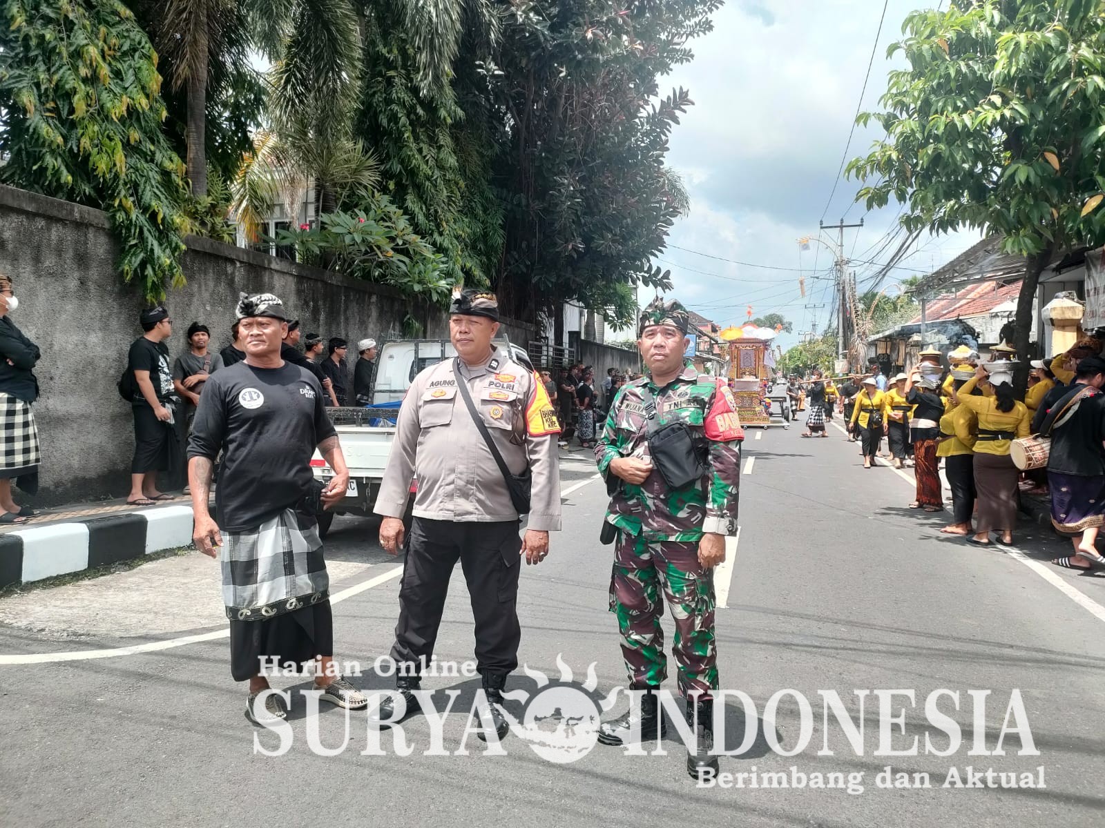 Kolaborasi Bhabinkamtibmas, Babinsa dan Pecalang Amankan Prosesi Ngaben di Banjar Bun