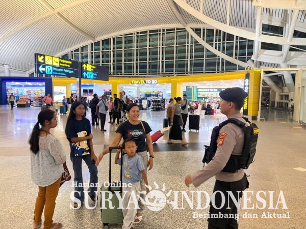 Sementara itu, di dalam Terminal Internasional, personel Polres Bandara menyambangi beberapa titik layanan publik serta berinteraksi dengan para penumpang yang menunggu waktu keberangkatan. Upaya ini dilakukan untuk memastikan suasana terminal tetap aman, nyaman, dan kondusif bagi wisatawan.