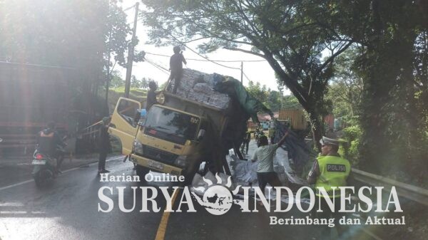 Tabanan, Surya Indonesia.net – Polsek Selemadeg Timur. Arus lalu lintas di jalur utama Denpasar–Gilimanuk tepatnya di Jelijih Tegeh, Megati, sempat mengalami gangguan pada Selasa dini hari (09/12/2025) sekitar pukul 03.45 Wita. Sebuah truk bermuatan kertas dan rongsokan plastik dengan No. Pol S 9688 JH oleng ke kiri akibat kelebihan muatan saat melintasi tikungan tajam, sehingga berhenti melintang di sisi selatan badan jalan dan memicu sistem buka-tutup arus kendaraan.
