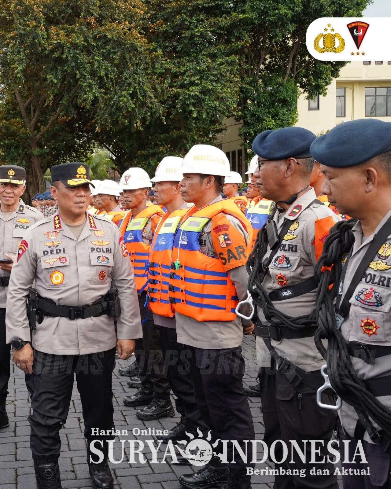 Wakapolri Komjen Pol. Dedi Prasetyo memimpin langsung apel kesiapan pemberangkatan pasukan dan kendaraan di Lapangan Mako Korbrimob Polri, Kelapadua, Cimanggis.