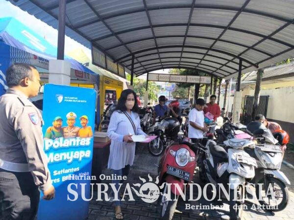 Blitar/suryaindonesia.net – Guna meningkatkan pelayanan publik dan pemahaman masyarakat, Satuan Lalu Lintas (Satlantas) Polres Blitar Kota secara konsisten menggelar program “Polantas Menyapa”. Kegiatan ini merupakan bentuk pelayanan proaktif petugas untuk memberikan edukasi langsung kepada masyarakat, termasuk seputar prosedur dan tarif layanan.