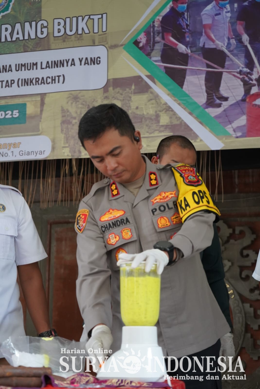 Gianyar, Surya Indonesia.net – Kapolres Gianyar AKBP Chandra C. Kesuma, S.I.K., M.H., menghadiri kegiatan pemusnahan barang bukti Narkotika dan Tindak Pidana Umum lainnya yang telah berkekuatan hukum tetap (Inkracht) bertempat di Aula SMPN 1 Gianyar, Jalan Ngurah Rai Gianyar, pada Rabu (10/12/2025) pukul 09.15–10.13 WITA. Kegiatan ini diselenggarakan oleh Kejaksaan Negeri Gianyar sebagai bentuk transparansi penegakan hukum serta upaya pencegahan penyalahgunaan barang bukti.