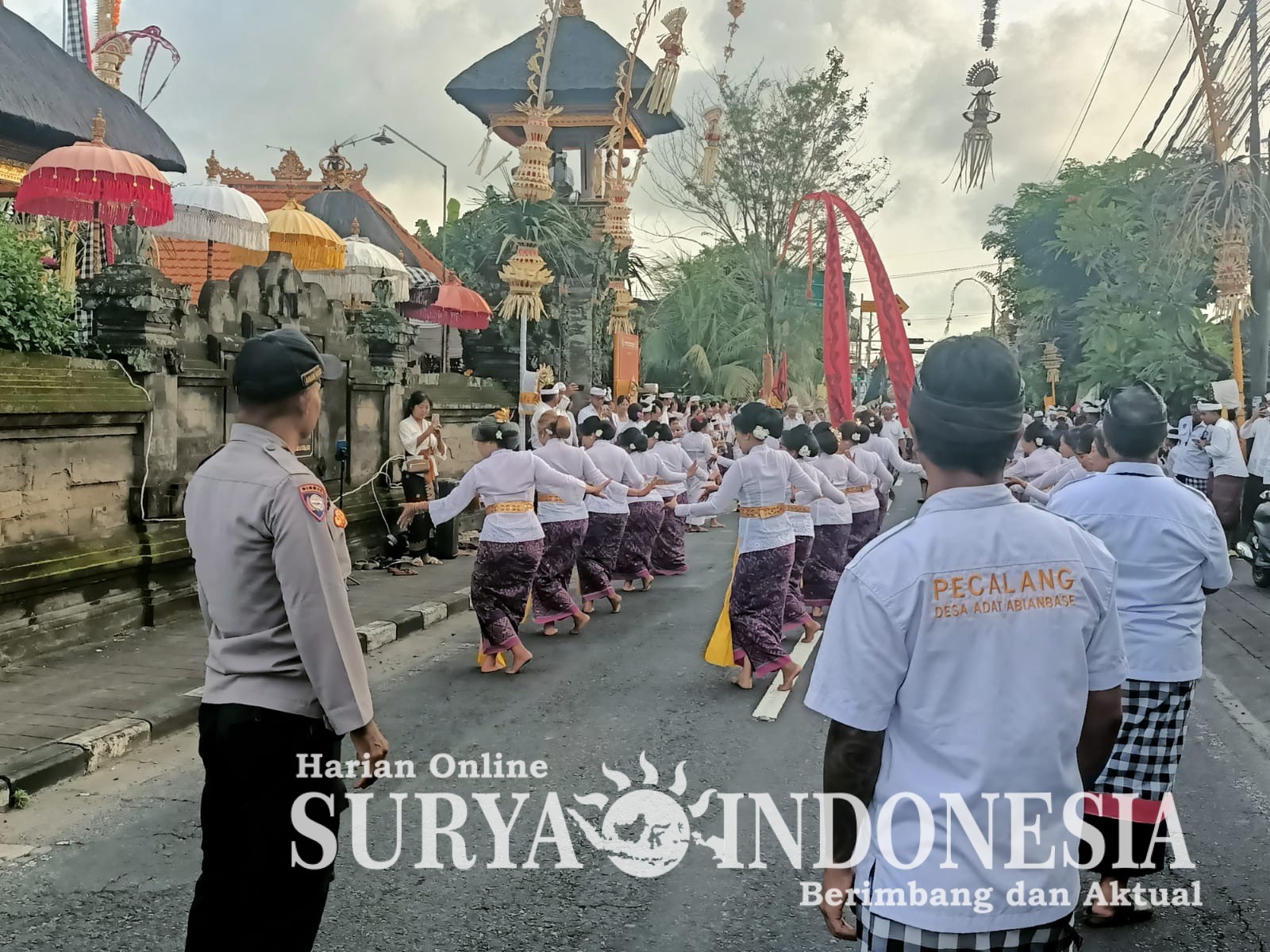 Lancarkan Kegiatan Masyarakat, Bhabinkamtibmas Kelurahan Abianbase Atensi Giat Piodalan
