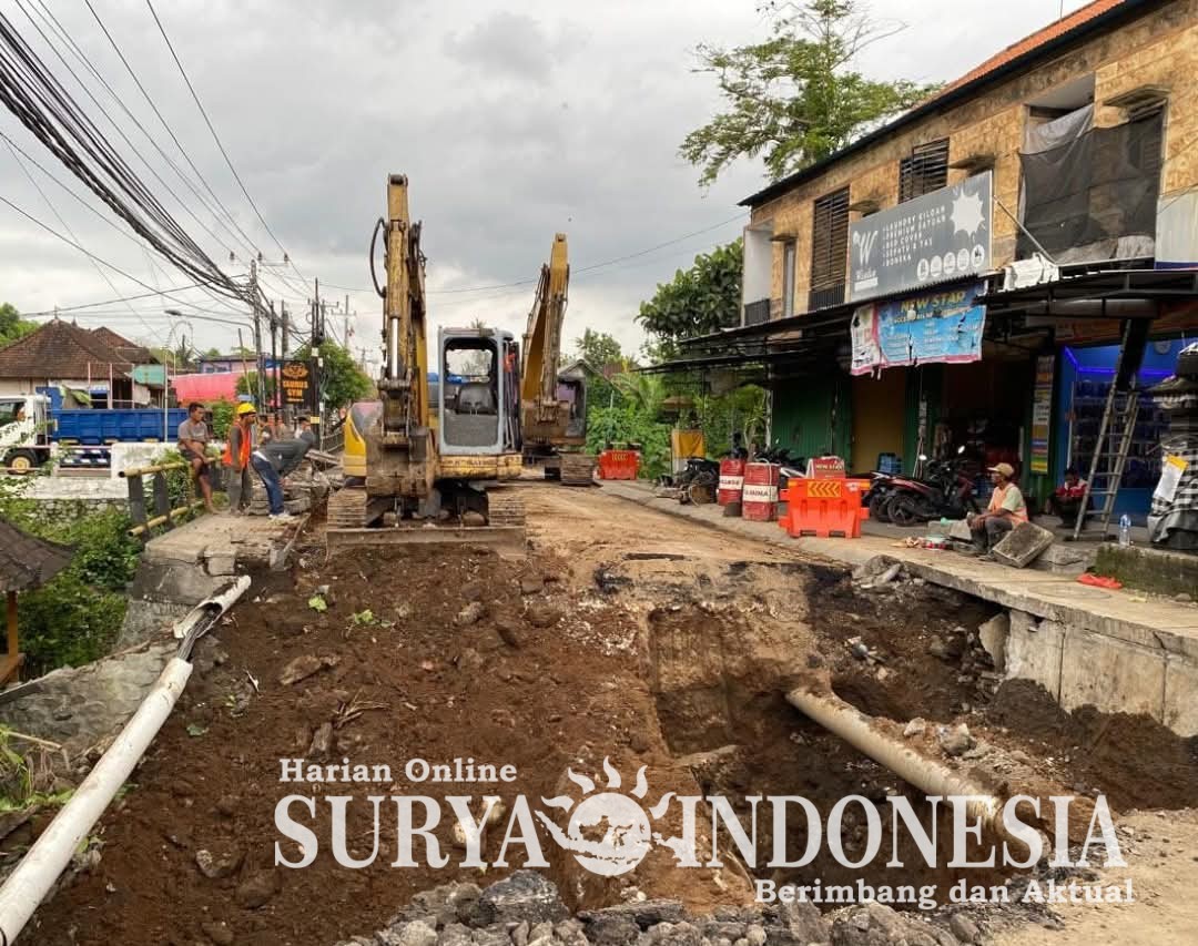 Mangupura, Surya Indonesia.net – Dinas PUPR Kabupaten Badung mulai melakukan perbaikan jalan jebol di Desa Darmasaba, Kecamatan Abiansemal. Perbaikan ini mulai dilakukan sejak 11 Desember 2025 yang ditargetkan selesai sebelum malam tahun baru. Perbaikan ini dilakukan pasca Jalan Raya Darmasaba berlubang yang posisinya di atas saluran irigasi.