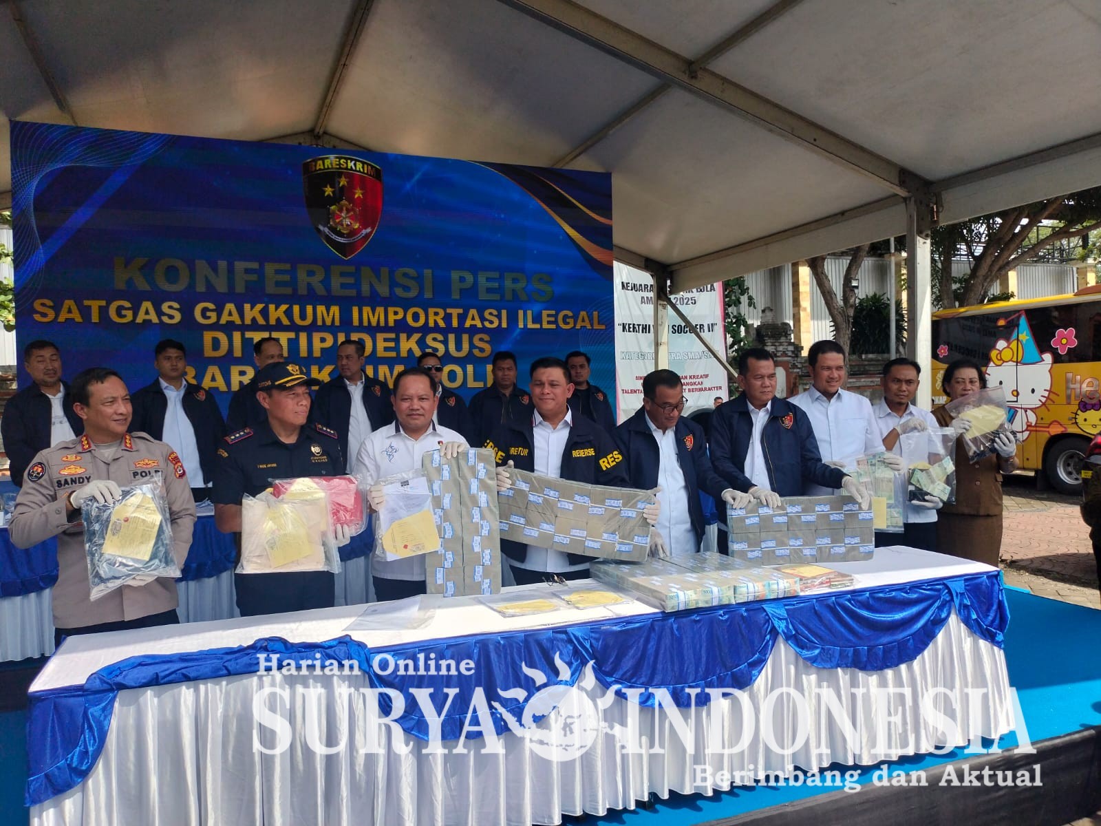 Denpasar, Surya Indonesia.net – Bareskrim Polri Ungkap Kasus Pencucian Uang Dengan Perdagangan Impor Pakaian Bekas Omset 1,3 T Di Pasar Kodok Tabanan Saat konfrensi Pers didepan para awak media di Gor Ngurah Rai Jl. Melati Denpasar, Kabid Humas Polda Bali Kombes Pol Ariasandy S.I.K., menerangkan Satgas Gakkum Importasi Ilegal dipimpin Dirtipideksus Bareskrim Polri Brigjen Pol.Ade Safri Simanjuntak.S.I.K.Msi., bekerjasama dengan Polda Bali berhasil ungkap tindak pidana pencucian uang dengan perdagangan impor barang dalam bentuk pakaian bekas pakai tidak dalam keadaan baru (Thrifting), dengan omset mencapai 1,3 Triliun Rupiah dan menetapkan dua orang tersangka dengan TKP di pasar kodok Tabanan Bali, senin 15/12/2025.