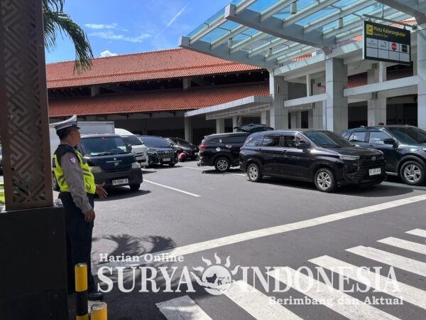 Badung, Surya Indonesia.net – Personel Satuan Lalu Lintas Polres Kawasan Bandara I Gusti Ngurah Rai melaksanakan kegiatan pengaturan arus lalu lintas di area keberangkatan Terminal Domestik Bandara I Gusti Ngurah Rai, Senin (15/12/2025). Kegiatan ini bertujuan untuk menjaga kelancaran arus kendaraan serta memberikan rasa aman dan nyaman bagi para pengguna jasa bandara.