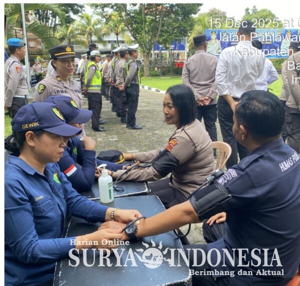 Tabanan, Surya Indonesia.net – Dalam rangka mendukung terwujudnya harkamtibmas yang kondusif sebelum dan sesudah pelaksanaan Operasi Lilin Agung 2025, Seksi Kedokteran dan Kesehatan (Sidokkes) Polres Tabanan melaksanakan kegiatan kesehatan lapangan terhadap personel yang mengikuti Apel Kegiatan Rutin Yang Ditingkatkan (KRYD), pada Senin (15/12/2025) pagi di Lapangan Tathya Dharaka Polres Tabanan.