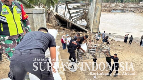 Bireun, Surya Indonesia.net – Personel SAR Satuan Brimob Polda Aceh membantu menyalurkan bantuan logistik untuk masyarakat terdampak bencana di Desa Kubu, Bireuen, dengan menggunakan jembatan Sling Baja.