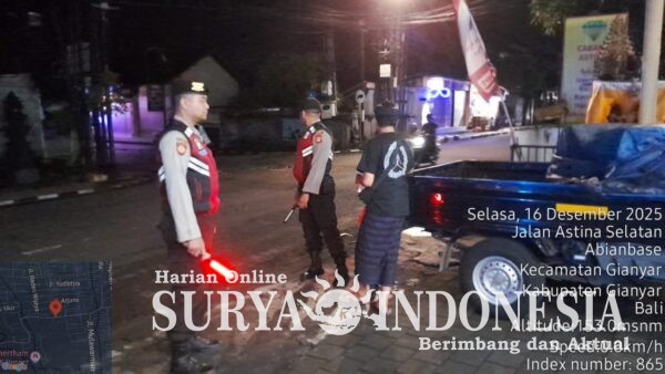 Gianyar, Surya Indonesia.net – Dalam rangka menjaga situasi keamanan dan ketertiban masyarakat (kamtibmas) tetap kondusif, personel Patroli Sat Samapta Polres Gianyar melaksanakan Patroli Terpadu Beat 1 di wilayah hukum Polres Gianyar, Selasa (16/12/2025) dini hari.