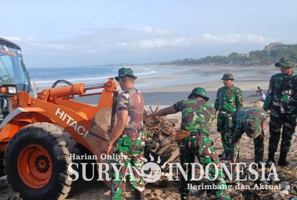 BALI – Badung,Surya Indonesia. Net – Pantai Kuta dan Pantai Kedonganan/Jimbaran di Wilayah Kabupaten Badung menjadi lokasi pelaksanaan Karya Bhakti Terpadu yang bertujuan untuk penanganan sampah laut pantai. Kegiatan yang dirancang untuk menjaga kebersihan dan kelestarian lingkungan pesisir ini dipimpin oleh Danramil 1611-03/Kuta, Mayor Inf Hendra Gunawan, dan melibatkan puluhan personel gabungan dari TNI serta instansi terkait. Pada Rabu, (17/12/2025).