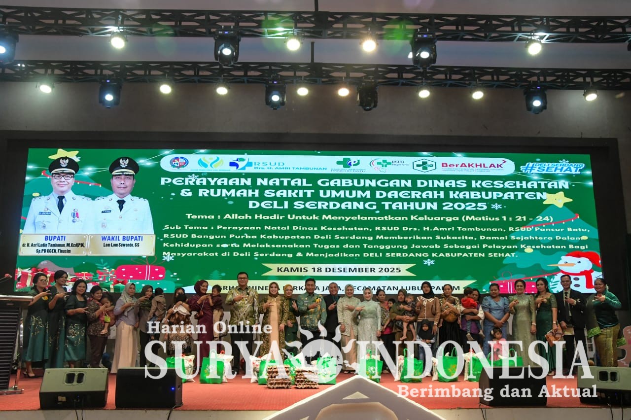 Bupati Deli Serdang, dr H Asri Ludin Tambunan bersama Wakil Bupati, Lom Lom Suwondo SS menghadiri Perayaan Natal Gabungan Dinas Kesehatan dan Rumah Sakit Umum Daerah (RSUD) Kabupaten Deli Serdang Tahun 2025 yang dihadiri pula oleh Wakil Bupati, Lom Lom Suwondo SS di Grha Bhineka Perkasa Jaya, Lubuk Pakam, Perayaan Natal tersebut diharapkan bisa meningkatkan semangat pengabdian, khususnya para tenaga kesehatan.